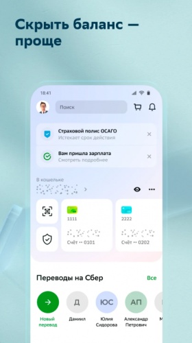 - Быстрые переводы: отправляйте деньги на карту, телефон или банковский счёт.