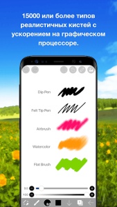 - Огромное количество кистей. У приложения более 450 видов кистей, включая акварельные, маркеры, аэрографы и текстурные. Они позволяют экспериментировать и добиваться различных эффектов.