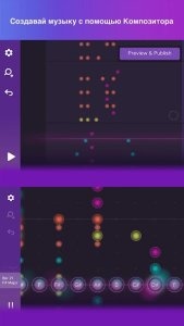 Среди ключевых особенностей приложения можно выделить встроенный композитор. С его помощью вы сможете самостоятельно создавать мелодии, используя минималистичный, но функциональный редактор. Кроме того, приложение поддерживает широкий спектр жанров - от классики до хип-хопа, постоянно пополняя библиотеку песен.