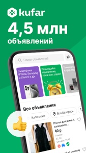 Kufar — это популярная белорусская платформа для размещения объявлений, где вы можете купить или продать практически всё. От техники до недвижимости, от одежды до автомобилей — приложение охватывает все сферы жизни. С его помощью вы легко найдёте нужный товар или услугу, а также сможете предложить свои.