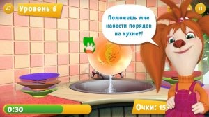- Моем посуду: помогите Лизе навести порядок на кухне.