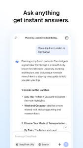 DeepSeek помогает вам справляться с повседневными вызовами. Вы можете использовать его для планирования, поиска информации или даже для генерации идей. Приложение адаптируется к вашим запросам, предлагая персонализированные решения и советы.