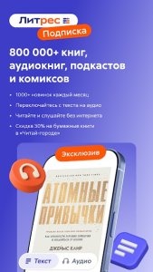 Приложение позволяет вам не только читать, но и слушать книги. Вы можете создавать собственные подборки, добавлять закладки и даже делиться впечатлениями с друзьями. Для тех, кто любит планировать, доступен календарь с напоминаниями о новых релизах. А если вы не уверены в выборе, ознакомительные фрагменты помогут принять решение.