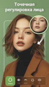 Приложение позволяет редактировать как одиночные, так и групповые фотографии, поддерживая до 20 лиц на одном снимке. Вы можете настроить каждую деталь, от формы носа до изгиба бровей, а также использовать автоматическую ретушь для быстрого результата.