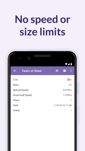 BitTorrent предлагает множество полезных функций, включая возможность устанавливать лимиты на скорость загрузки и выгрузки, чтобы не перегружать сеть. Дополнительно, вы сможете настроить автоматическое отключение приложения после завершения загрузки, что особенно удобно для экономии батареи. А встроенные музыкальные и видеобиблиотеки сделают доступ к контенту еще проще.