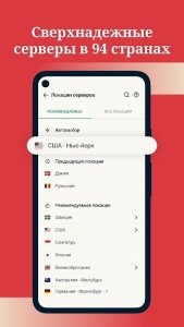 ExpressVPN отличается интуитивно понятным интерфейсом. Вам потребуется всего один клик, чтобы подключиться к серверу. Приложение автоматически подберет оптимальную локацию для быстрого и стабильного соединения. Кроме того, вы сможете вручную выбрать сервер из более чем 160 локаций в 94 странах. Это особенно полезно для обхода географических ограничений, например, при доступе к стриминговым сервисам.