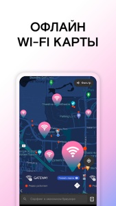 Instabridge предлагает уникальную карту WiFi, которая доступна даже в оффлайн-режиме. Просто откройте карту, чтобы найти ближайшую точку доступа, и подключайтесь без лишних усилий. Более того, приложение анализирует скорость сети, её популярность и другие параметры, чтобы вы могли выбрать лучший вариант для подключения.