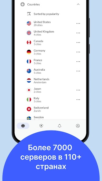 - Специальные серверы: двойное шифрование, P2P и Onion over VPN для максимальной защиты.