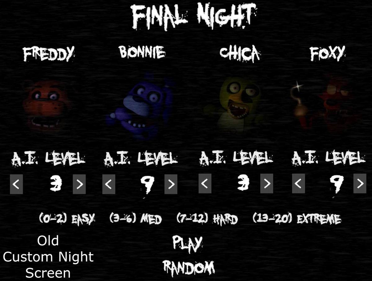 - Уровни сложности: Игра предлагает несколько уровней сложности. На легком уровне специальные индикаторы-треугольники подсказывают, куда движется аниматроник, меняя цвет в зависимости от его близости. На сложном уровне этих подсказок нет, а враги действуют гораздо агрессивнее.