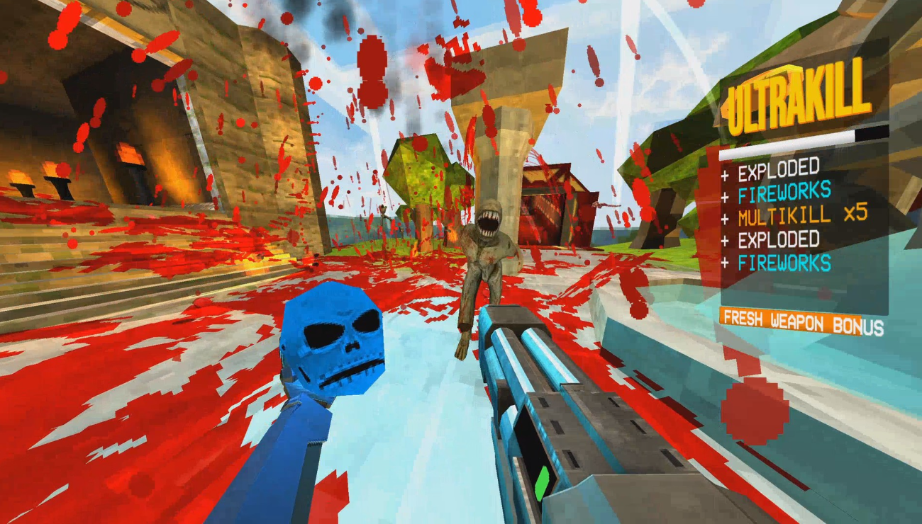 В отличие от классических шутеров, здесь нет аптечек или укрытий для регенерации: единственным способом восстановить здоровье является купание в свежей крови врагов прямо на поле боя.
