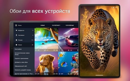 Эта программа создана для того, чтобы ваш экран выглядел стильно и свежо. Она идеально адаптирует любое изображение к характеристикам вашего устройства. Встроенная система оптимизации подбирает разрешение под экран вашего телефона или планшета, а светлая и тёмная темы оформления добавляют гибкости. HD обои от 7Fon станут вашей незаменимой платформой для персонализации гаджета быстро и без лишних усилий.