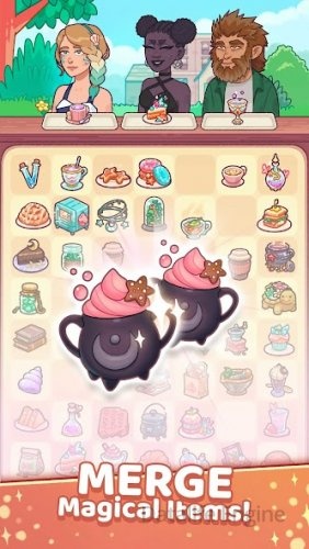 - Объединение элементов: соединяйте магические ингредиенты, чтобы создавать новые предметы для кафе.