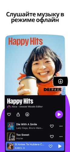 Deezer – это одна из ведущих платформ для стриминга музыки и подкастов, предлагающая огромный каталог треков, доступных на любых устройствах. Эта утилита предоставляет возможность слушать музыку в режимах онлайн и офлайн, а также предлагает персонализированный музыкальный микс Flow, создаваемый на основе ваших предпочтений. Благодаря интуитивно понятному интерфейсу, вы можете легко находить новые композиции, наслаждаться любимыми треками и открывать подкасты, подходящие под ваше настроение.
