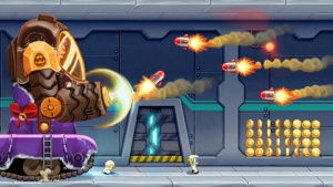 Jetpack Joyride – это аркадный раннер с элементами экшена, где главный герой Барри Бифстроганов отправляется на необычайное приключение, вооружённый реактивным ранцем. Ваша задача проста, но невероятно увлекательна – пролететь как можно дальше, уворачиваясь от лазеров, ракетоносцев и опасных ловушек. Выполняйте миссии, зарабатывайте монеты и открывайте уникальные гаджеты, которые делают каждый забег ещё более захватывающим. Кроме того, яркий визуальный стиль и быстрый геймплей создают незабываемую динамику.