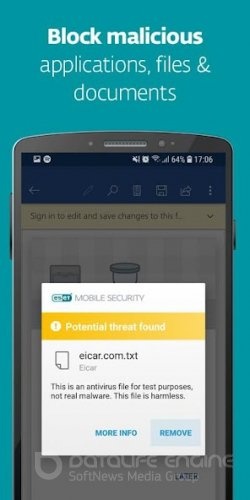 С ESET Mobile вы можете спокойно пользоваться интернетом, работать с важными файлами и оставаться уверенными в их безопасности.