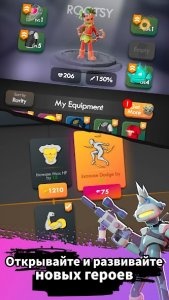 - Игра на прокачку: улучшайте оружие и навыки прямо на арене.